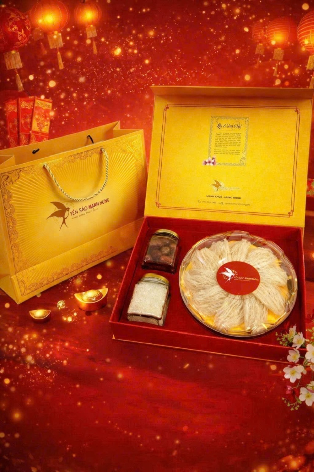 Trao quà sức khỏe – Gửi trọn yêu thương ngày xuân Hộp quà Tết của Mạnh Hưng Nest là sự kết hợp tinh tế giữa giá trị dinh dưỡng từ yến sào cao cấp và thiết kế sang trọng, phù hợp làm quà biếu Tết cho gia đình, đối tác và khách hàng trong dịp năm mới.